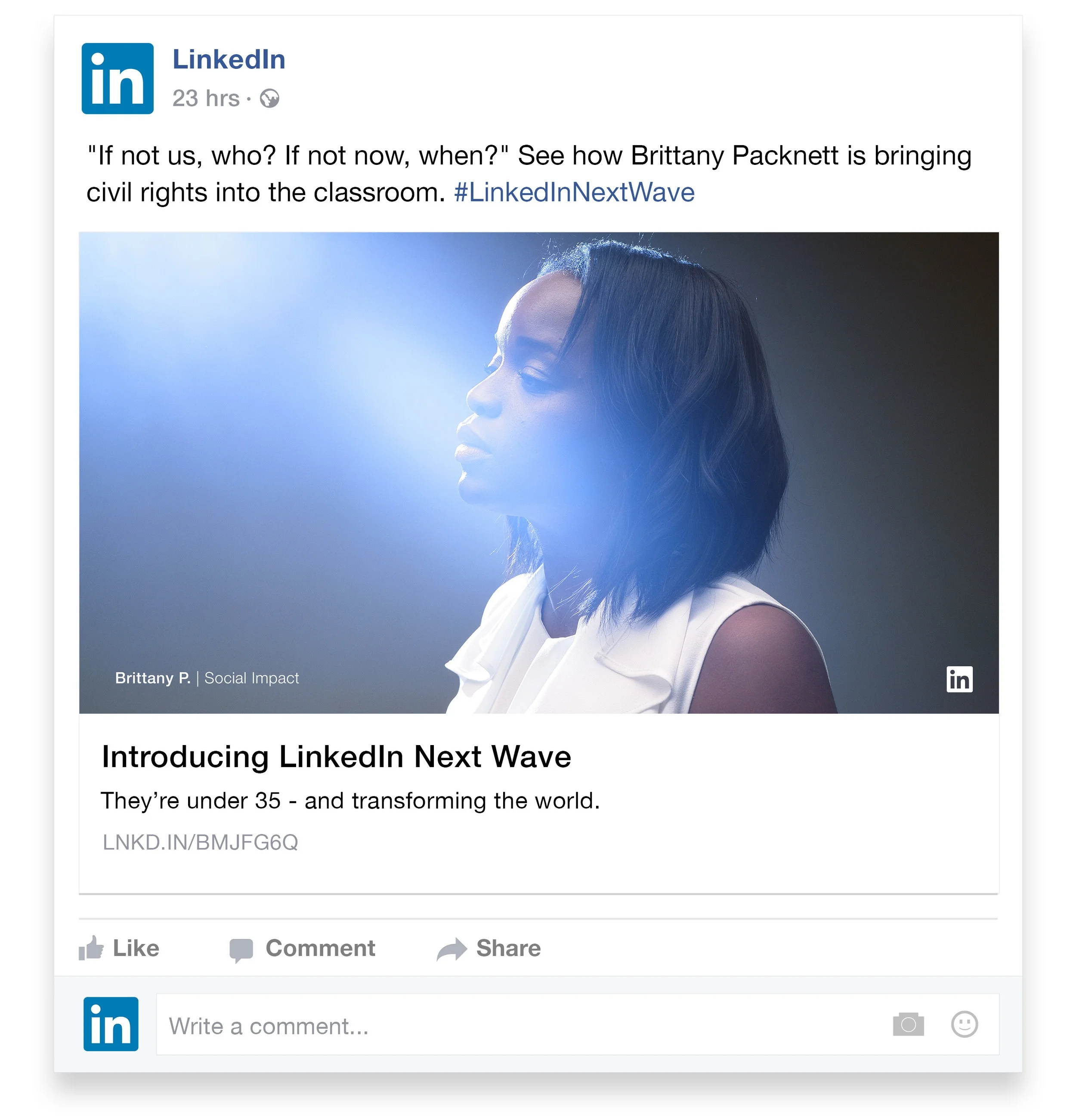 "Next Wave" is a celebratory list of the top people, under 35, that are revolutionising their industries. Using LinkedIn data, we found the most influential young people in technology, social impact, healthcare and more and flew them to New York for a full day photo and video shoot. We then built a full campaign around the assets we gathered.